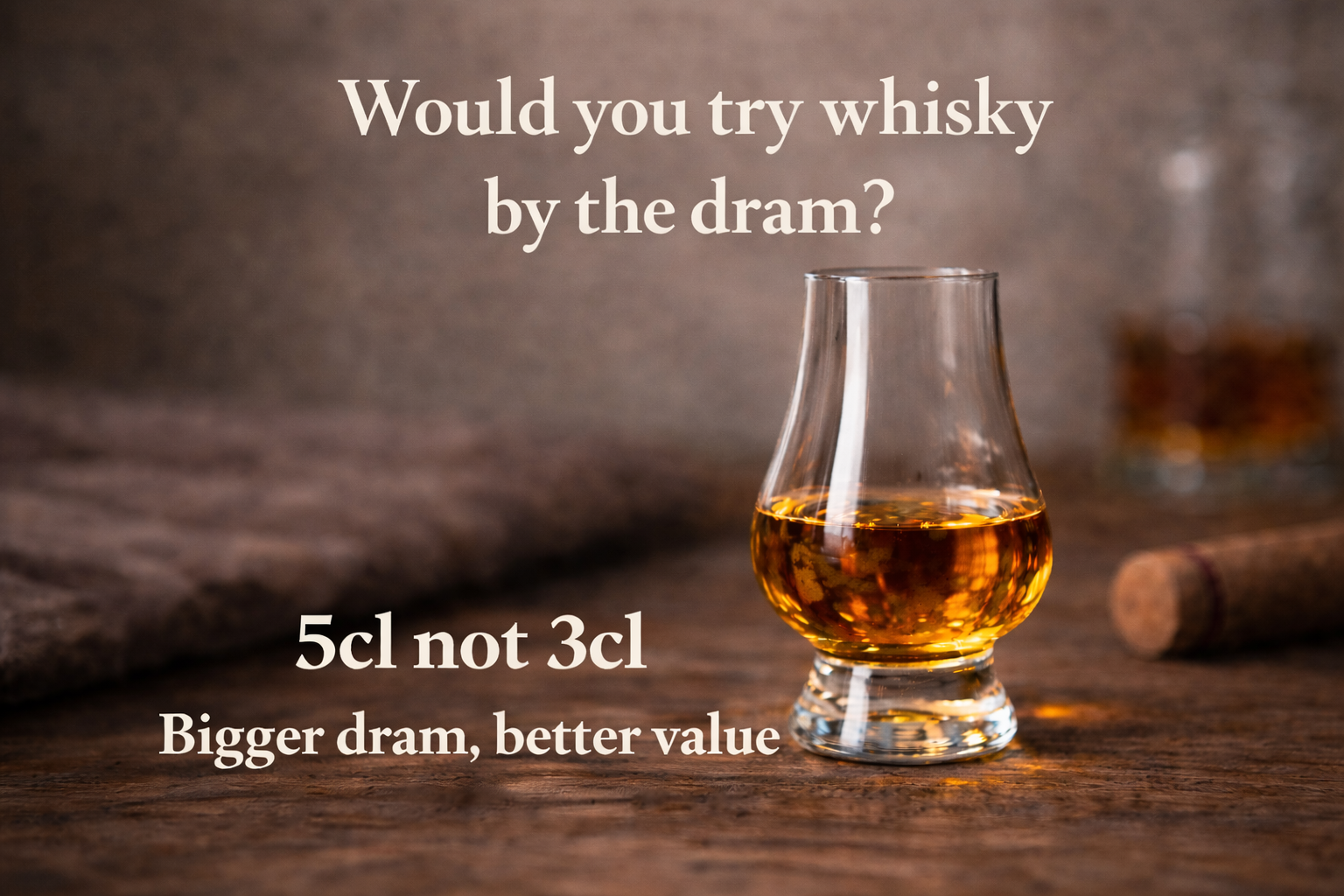 Our drams are a generous 5cl, giving you more value than the standard 3cl.