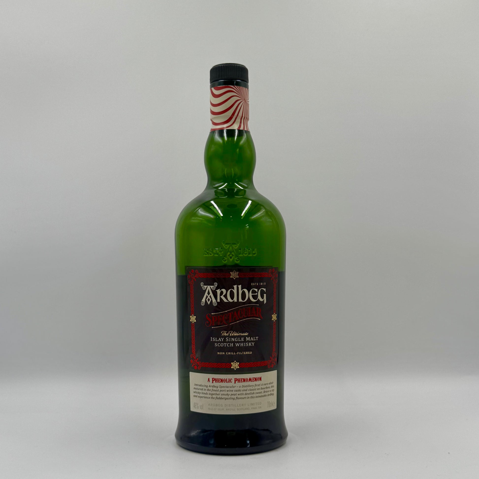For the first time ever, Ardbeg Spectacular. has been matured in rare port wine casks. Years in ex-bourbon and port wine casks have imparted a mesmerising array of bizarre notes. Fragrant lavender, vetiver and incense candles tumble into rich almond nuttiness.